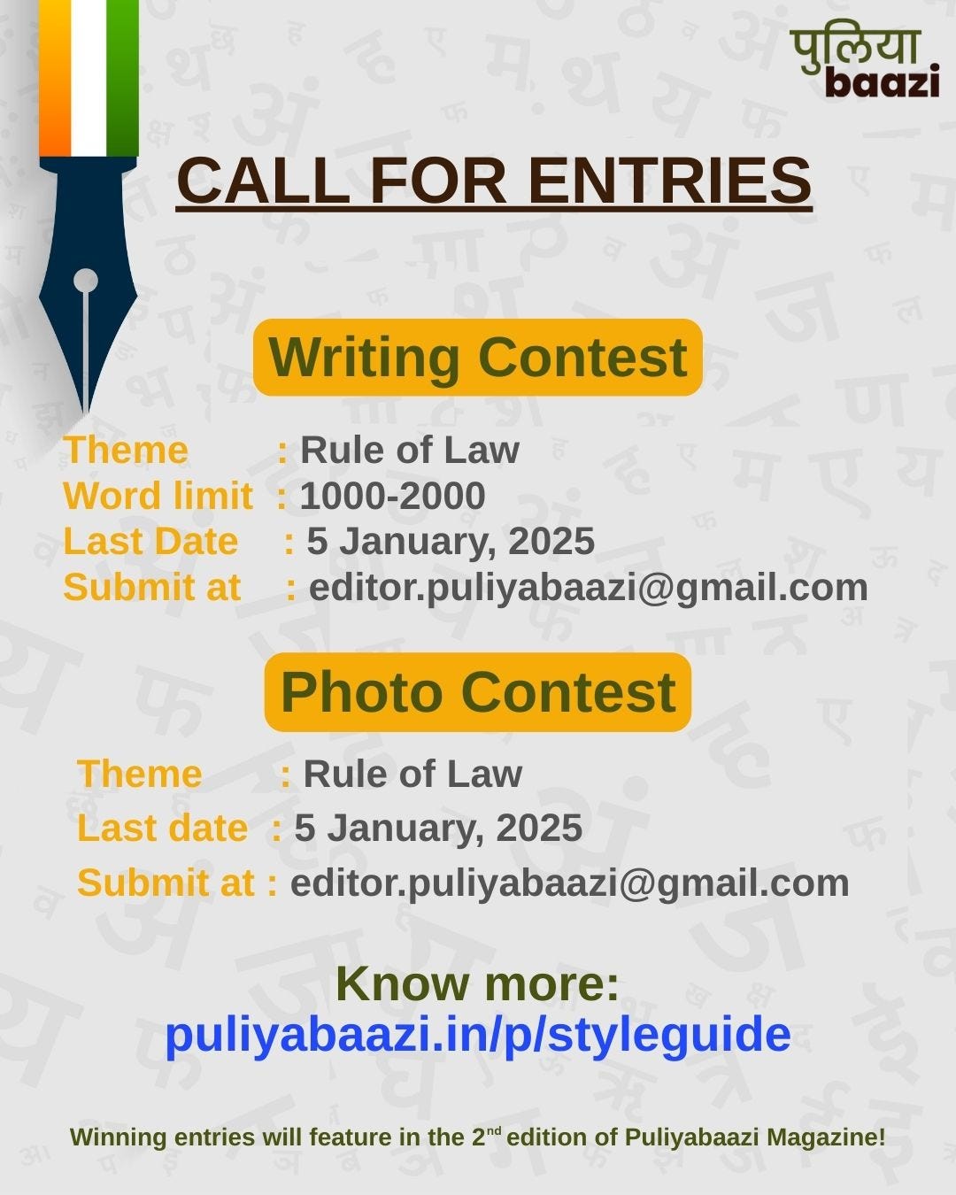 Send email to puliyabaazi@gmail.com with “Submission:<Title>” in the subject line. Also add your short bio, contact details and substack or other social media handles.